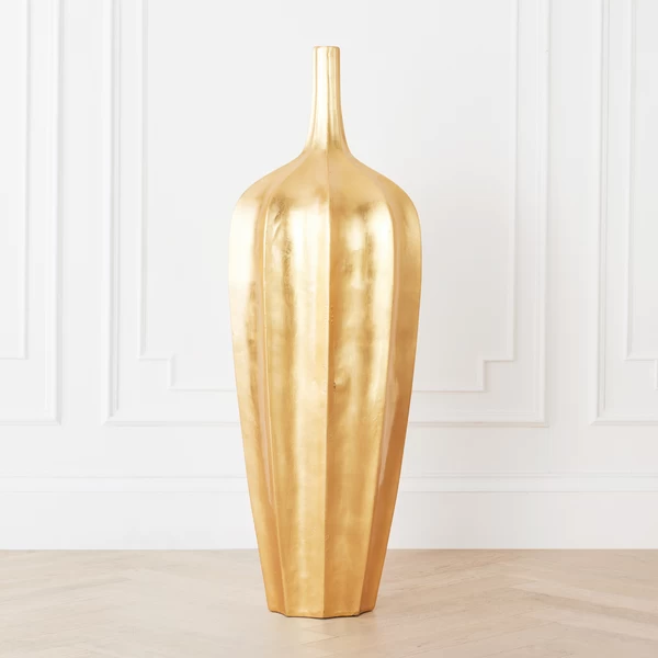 Inspired by the unparalleled brilliance of metallic gold, Z Gallerie has created our exclusive Accolade Vase to make a striking impression in a room. The simple lines of a classic fluted vase are accentuated by the substantial scale, measuring 16.25 inches diameter by 48.75 inches tall, while the fluted surface makes the most of a rich, lustrous gold foil finish. The vase is molded from lightweight materials to make it practical and portable, and creates an exceptional focal point when placed either on the floor or on a large table or shelf.