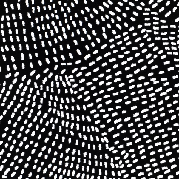 This rug enlivens any space with its swirled dash design in white on a black ground.