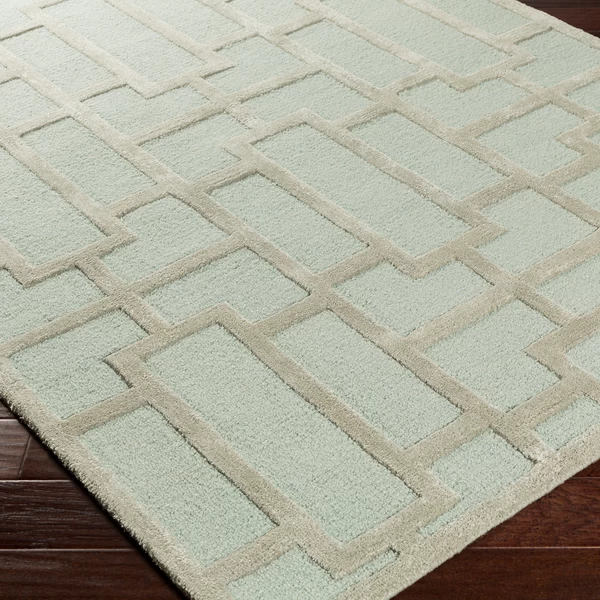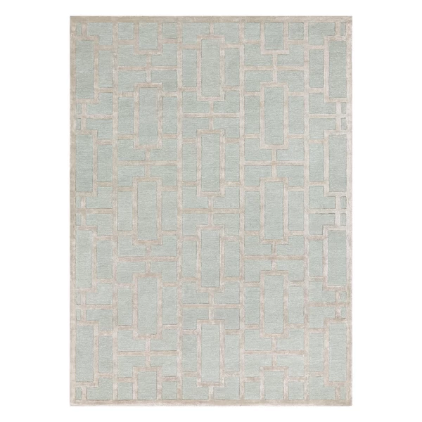 Hand-tufted rugs combine wool and viscose to create a durable pile. Gold chain link design pops on neutral grey for an almost 3-dimensional appearance.