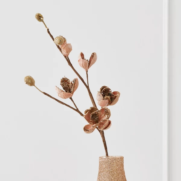 Simply beautiful, our Beaded Magnolia Stem makes easy work of creating an outstanding floral arrangement. Pliable petals and wired stems to allow for flexibility in arranging.