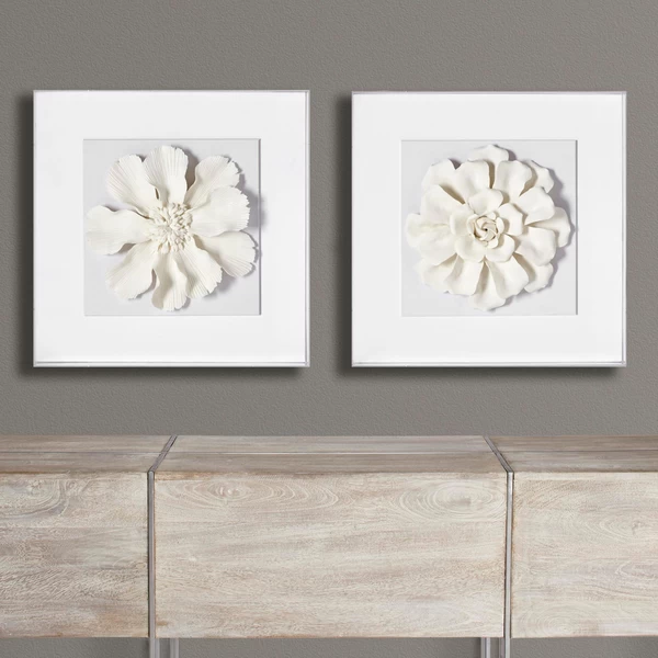 Let’s hear it for flower power! Displayed in shadowbox frames and mounted on linen, the flower sculptures in this series add an incredible element of texture to your wall.