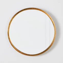 A standout addition to any space, gleaming gold trim accentuates the extra-deep, glossy black frame of this beveled mirror.