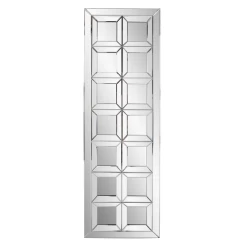 Featuring faceted, square mirrors arranged in a windowpane style, this mirror makes a striking focal point in any room. D-rings are affixed to the back of the mirror so it is ready to hang in a horizontal or vertical orientation.
