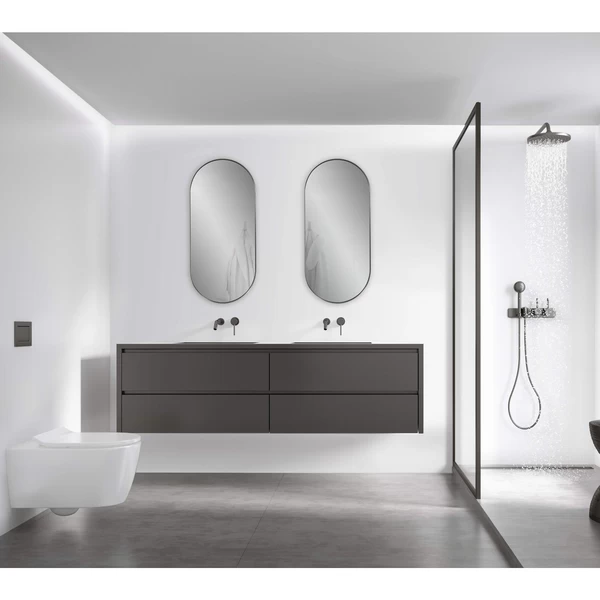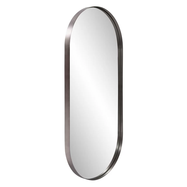 The Capsule Wall Mirror, features curved lines and on trend finishes. The brushed silver rounded frame of this mirror compliments some of todays modern design trends.
