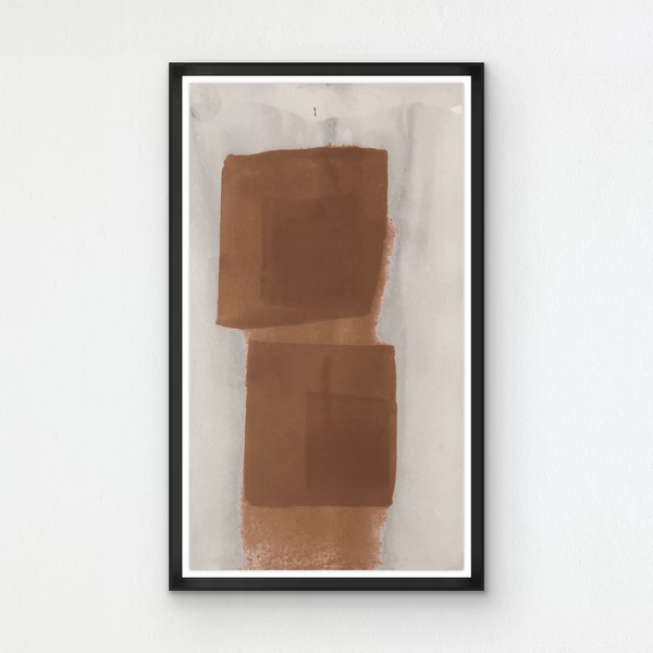 A standout addition to any space, this abstraction from artist Dawn Sweitzer showcases remarkable balance and use of negative space. Printed on paper, this piece is displayed under glass in a black frame.