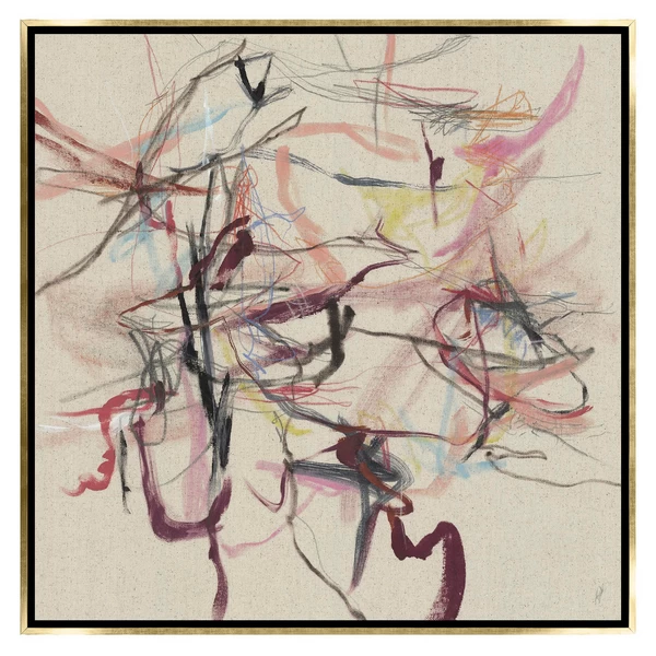 This impressive abstraction from artist Kelly OāNeal adds a modern note and hint of color to your wall. Printed on canvas, this piece is displayed in a gold floater frame.