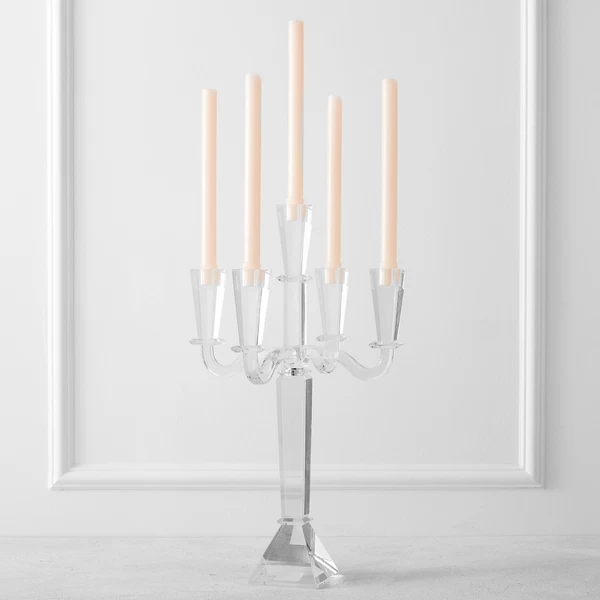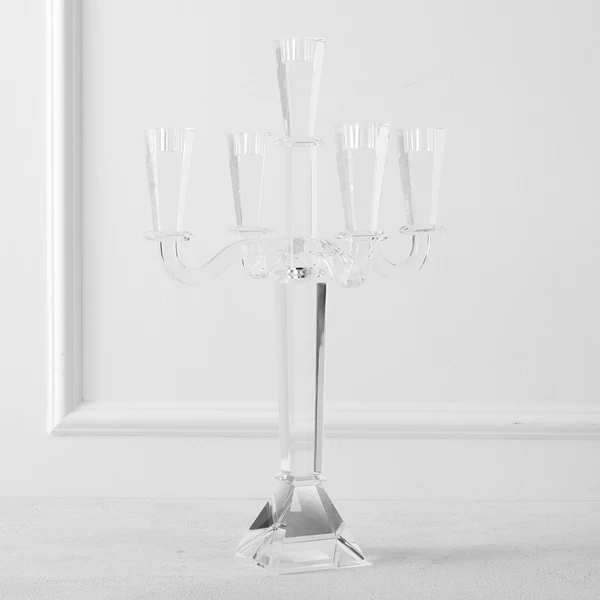 Add drama and height to the table with this five-arm candelabra, featuring a traditional silhouette updated in crystal-clear glass.