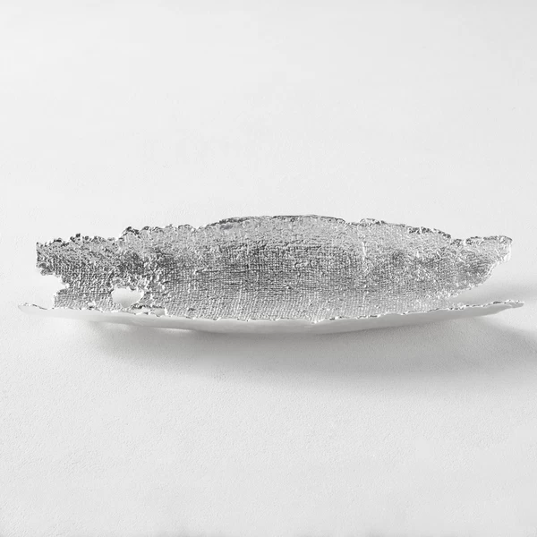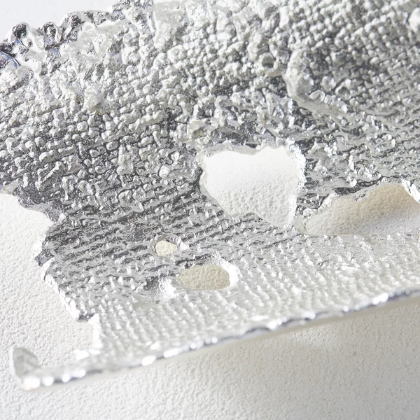 With its freeform shape and wonderful texture, this decorative plate brings organic allure to its surroundings, while a silver finish adds a chic, modern touch.