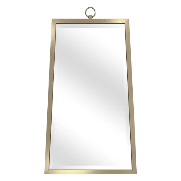 Our Finna Mirror is a rectangular shaped beveled mirror accented with a center ring finial in a brushed gold finish.