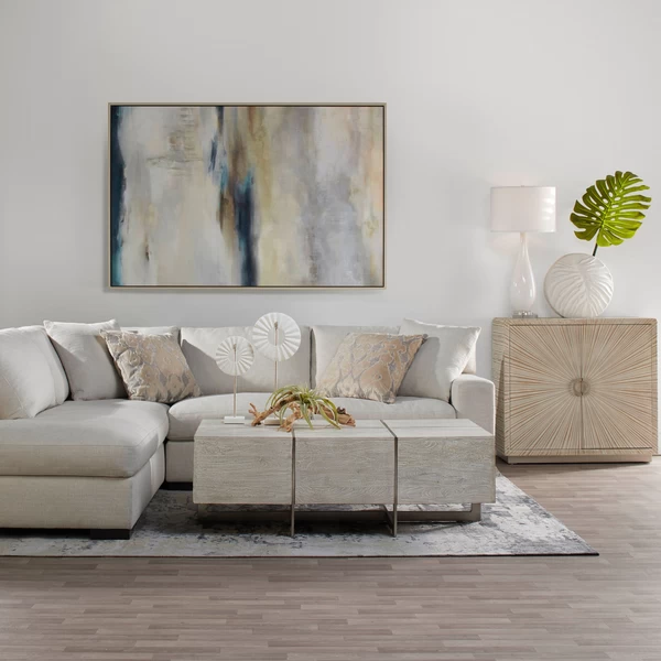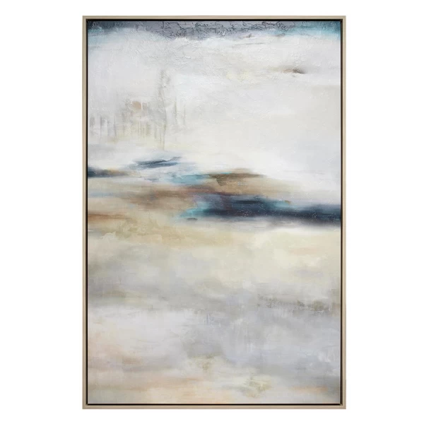 This beautifully layered abstraction from artist Elena Carlie showcases soft washes of color that lends a hazy, atmospheric quality to any wall. Printed on gallery-wrapped canvas with an image brush gel finish for added texture, this piece is displayed in a natural-hued floater frame.