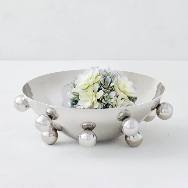 Sometimes you just need something unique. The stainless steel Gramercy Bowl features multiple polished knobs as whimsical pedestals.