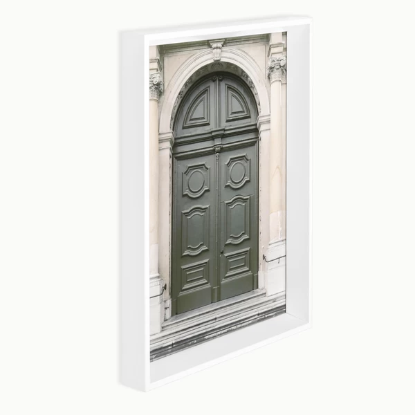 Green Door is a framed graphic under glass with a 2-tone white with blonde angled profile frame. 1 of 4 in a series.