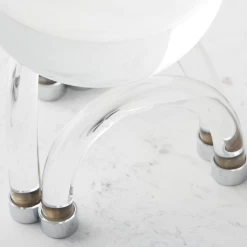 For those who love living large, our outstanding 10.5 inch tall Harlow perfume bottle is a dressing table essential. Crafted of clear, solid glass with simple beveled edges, the Harlow bottle has a removable stopper with an attached long glass stem and Silver metal fittings at the opening.