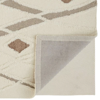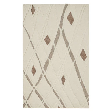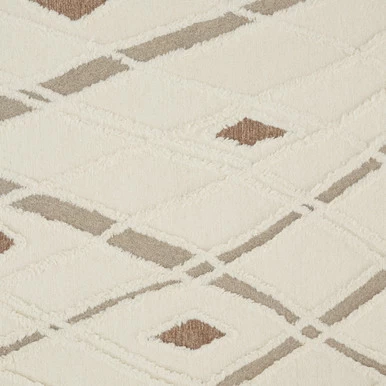 Featuring a high-low geometric design in ivory and brown, this plush hand-tufted wool rug will add texture, dimension, and style to any room it’s in.