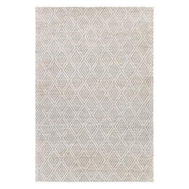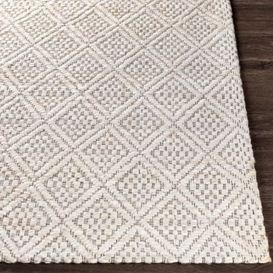 Handwoven of bleached white jute and black yarn, this rug enlivens your space with its allover diamond pattern and incredible natural texture.