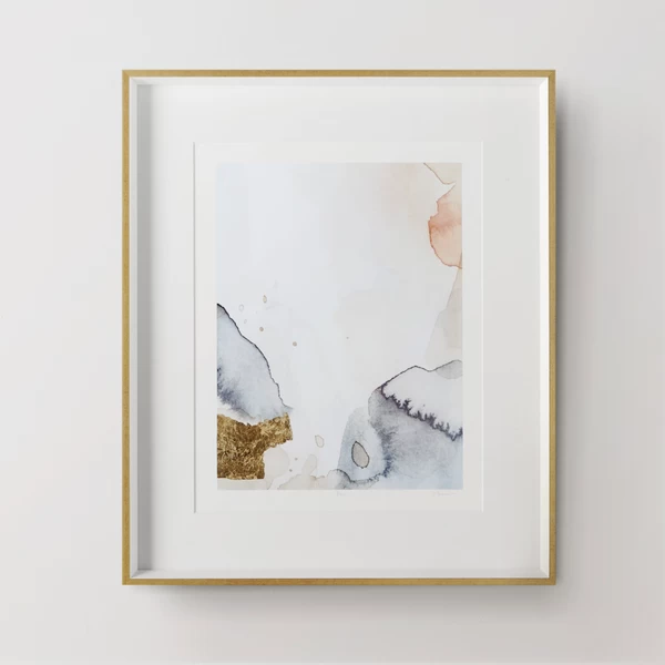 Hand-embellished with gold detailing, this abstraction from artist Victoria Barnes adds a glam, modern note to any space. Printed on archival paper, this piece is matted and displayed under glass in a white-and-gold frame.