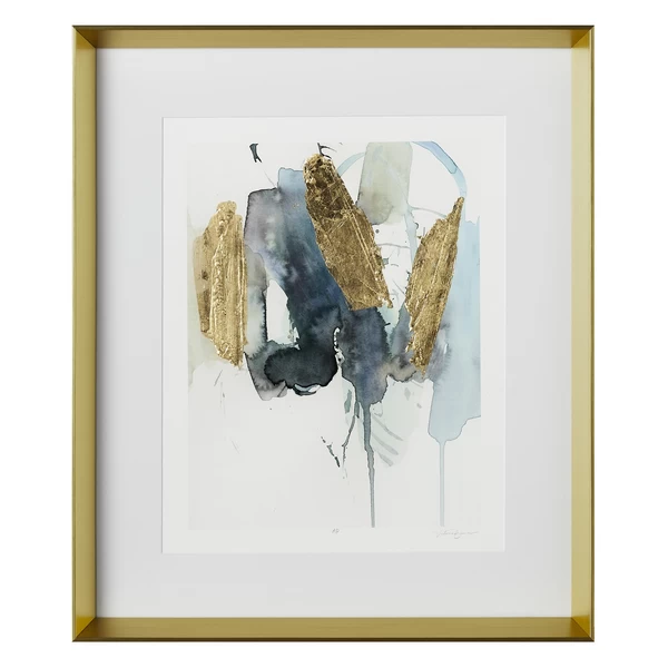 This limited-edition abstraction from artist Victoria Barnes enlivens any wall with its stunning blend of color and hand-applied gold embellishments. Printed on archival paper, this piece is displayed under glass in a gold frame.
