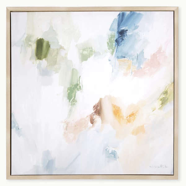 Jade is a gallery wrapped canvas with hand-applied pallet knife embellishment and set in a blonde floater frame.