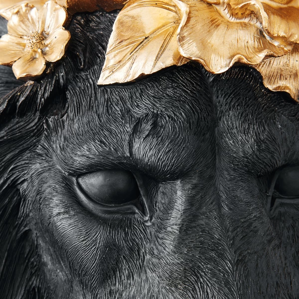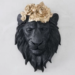 Our Leon Coronado Plague reigns the room. Crowned with an ornate metallic gold crown, this matte black lion is easily your most dramatic wall-hanging ever. Designed in lightweight resin, so it hangs easily just about anywhere.