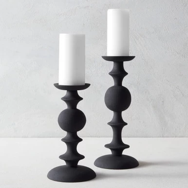 Designed with a shapely silhouette and textured, matte black finish, our Matias pillar holders make a stunning addition to any decor. Holds a 3.5ā diameter pillar candle, not included.