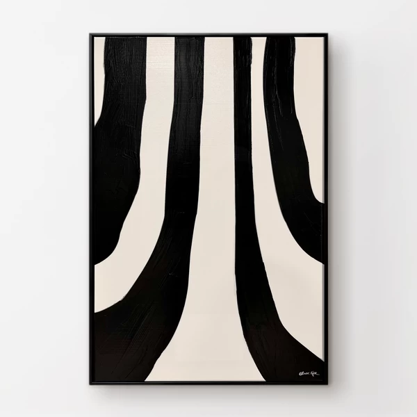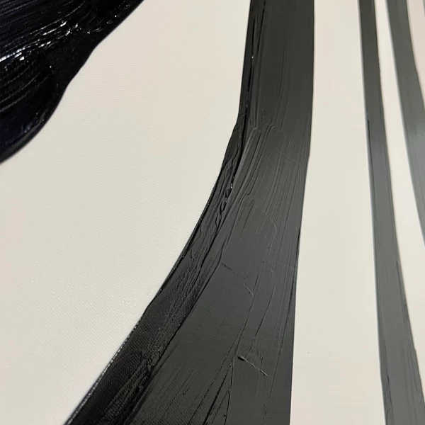 - Hand-stretched giclƩe print on canvas with handpainted black striping, finished with a glossy gel coat.
