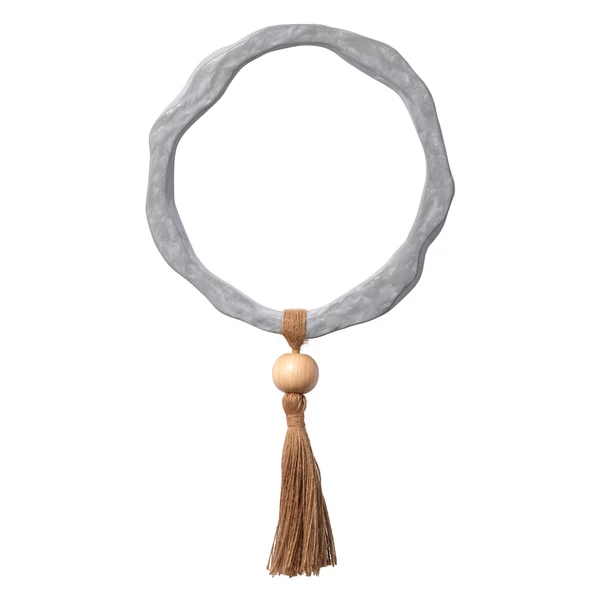 Inspired by the East, this set of three decorative hangings will add instant sophistication to any decor. These three organic, free-form resin rings will draw the eye to the expertly hand-knotted sisal rope and single natural wood bead. Soothing shades of blue, gray, and white create a feeling of calm. Generously sized, each piece is artisan crafted and each set is unique. The finish, wood grain, and exact measurements will vary.