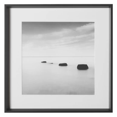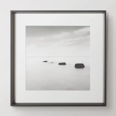 - Print set under glass with a white mat and solid wood frame with a black finish