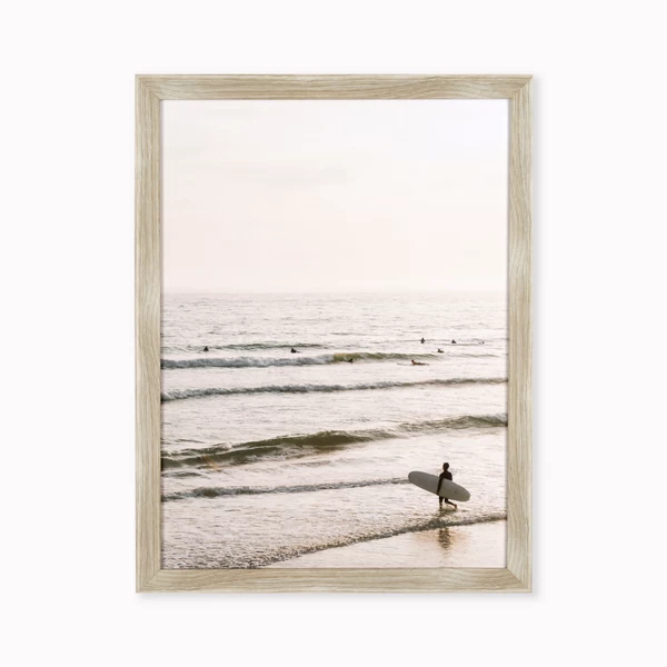 Morning Set is a framed graphic under glass with a textured blonde frame.