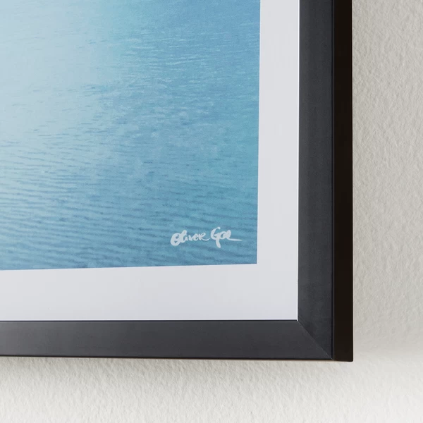 • Glossy art print mounted within a high gloss black wood shadowbox frame and set under plexiglass.