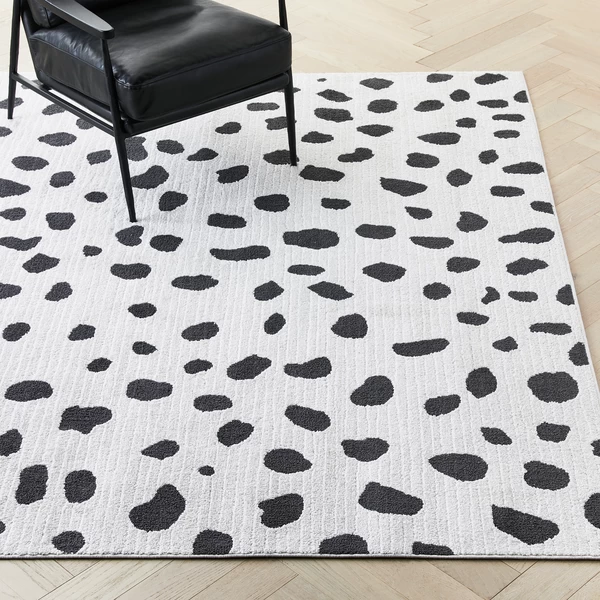 Featuring a leopard-spot pattern in black and white, this Moroccan shag rug is ideal for adding bold pattern and soft style to any space.