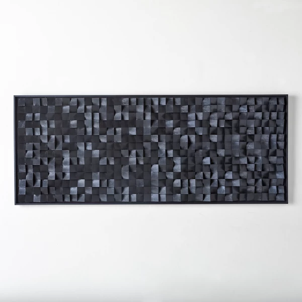 Create a space for wall decor that speaks to you. Nightfall is a conversation starter for sure. This abstract arrangement of cut black blocks is set in a low-profile black frame and will add visual interest to any wall.