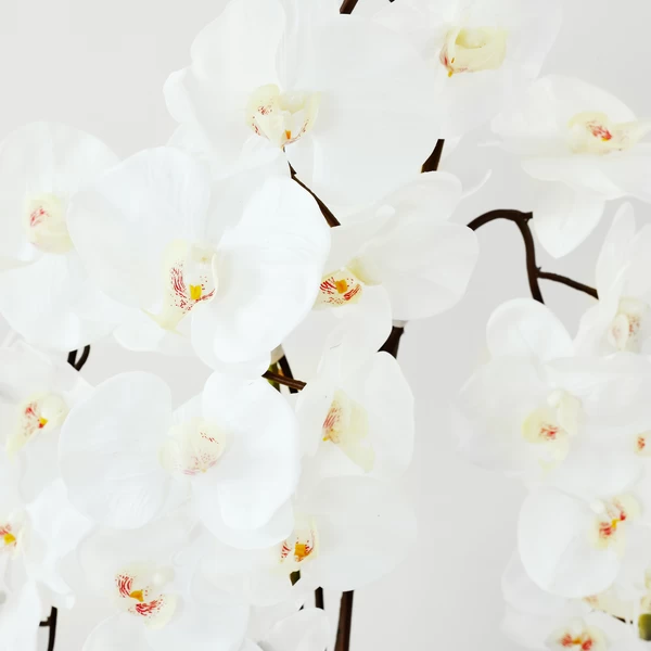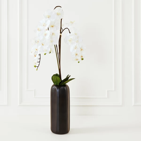 Make this faux orchid a feature of your space. Truly elegant in its black ceramic vase, this accent piece will add serenity and sophistication to any room.