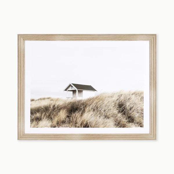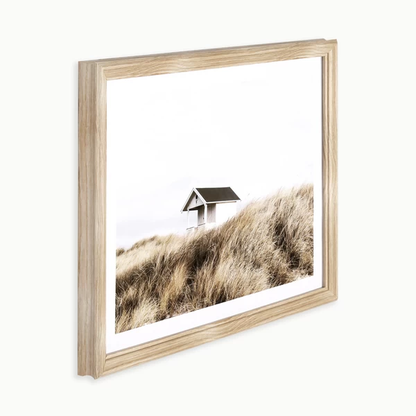 Ocean View 1 is a framed graphic under glass with a light blonde angled profile frame.  1 of is a series.