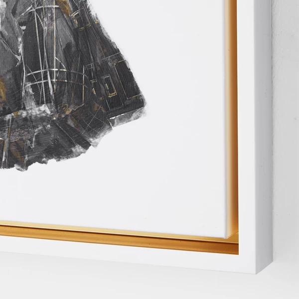 Small-scale in stature, but big on style, the On The Runway Series makes a fashion statement for sure. Each piece is created using giclee on canvas with a hand-applied image brush gel finish. They are framed in white floater frames with gold inner framing. On The Runway XII is #3 of 4 in a series.