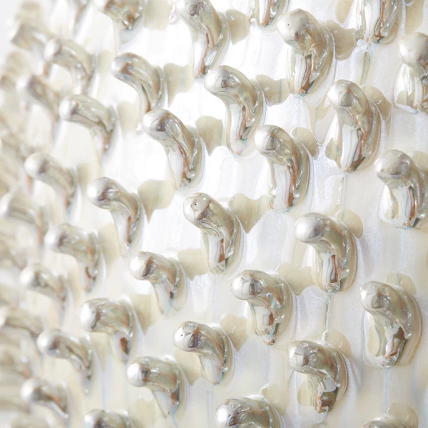Featuring a dimensional design and hand-glazed finish with subtle iridescent tones, this porcelain vase makes an eye-catching statement on any shelf.