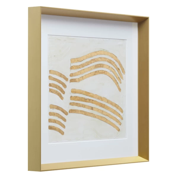 Full of energy and movement, this work from artist Melissa Wang is embellished with gold-leaf paint and a matte gel finish for gorgeous texture and shine. Printed on paper, this piece is matted and displayed under glass in a solid wood frame with a gold finish.