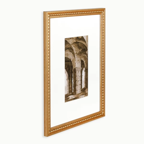 Roman Arches is a framed graphic under glass with a white mat and beaded gold frame.