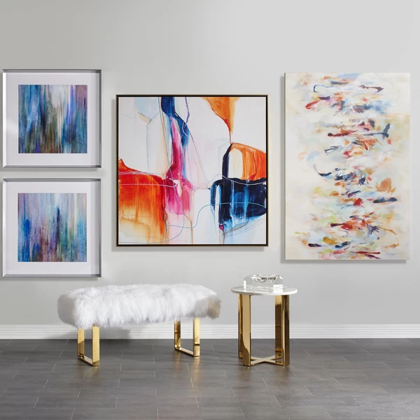 This impressive abstraction from artist Kelly O’Neal adds a modern note and hint of color to your wall. Printed on canvas with an image brush gel finish for added texture, this piece is displayed in a gold floater frame.