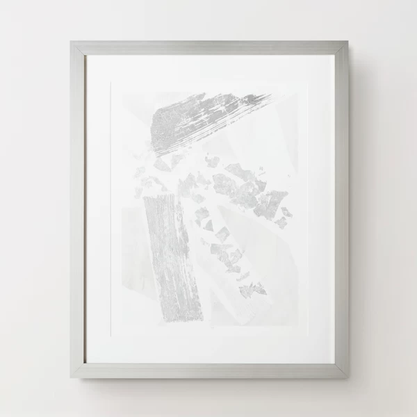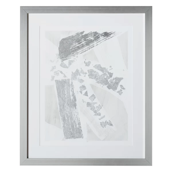 This impressively layered work from artist June Vess adds an abstract, modern note to your wall. Printed on fine-art paper with hand-applied silver and white paint embellishments, this piece is matted and displayed in a brushed silver frame. Each print is plate signed and hand-numbered.