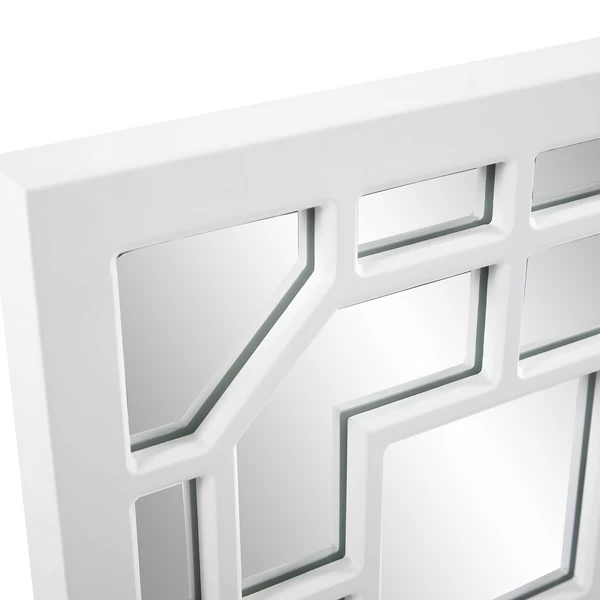 Featuring an intricately detailed lattice overlay design, this wall mirror exudes classic English style. A matte white finish tops off the look.