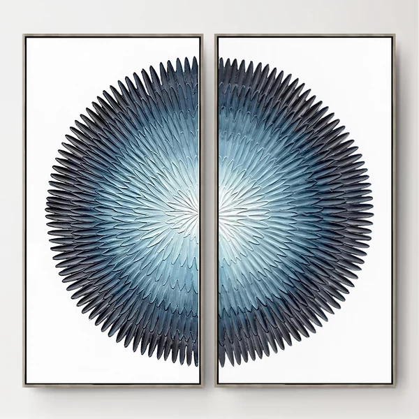 Forget your troubles, come on get happy. This hand-painted canvas makes the blues beautiful. Set in a silver floater frame, it can be hung vertically or horizontally. Complete the look with Troubles I.