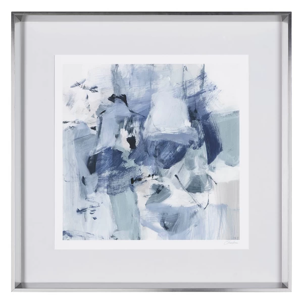 Bring that brisk winter feeling. This abstract series of 2 captures cool serenity in layered strokes of blue.